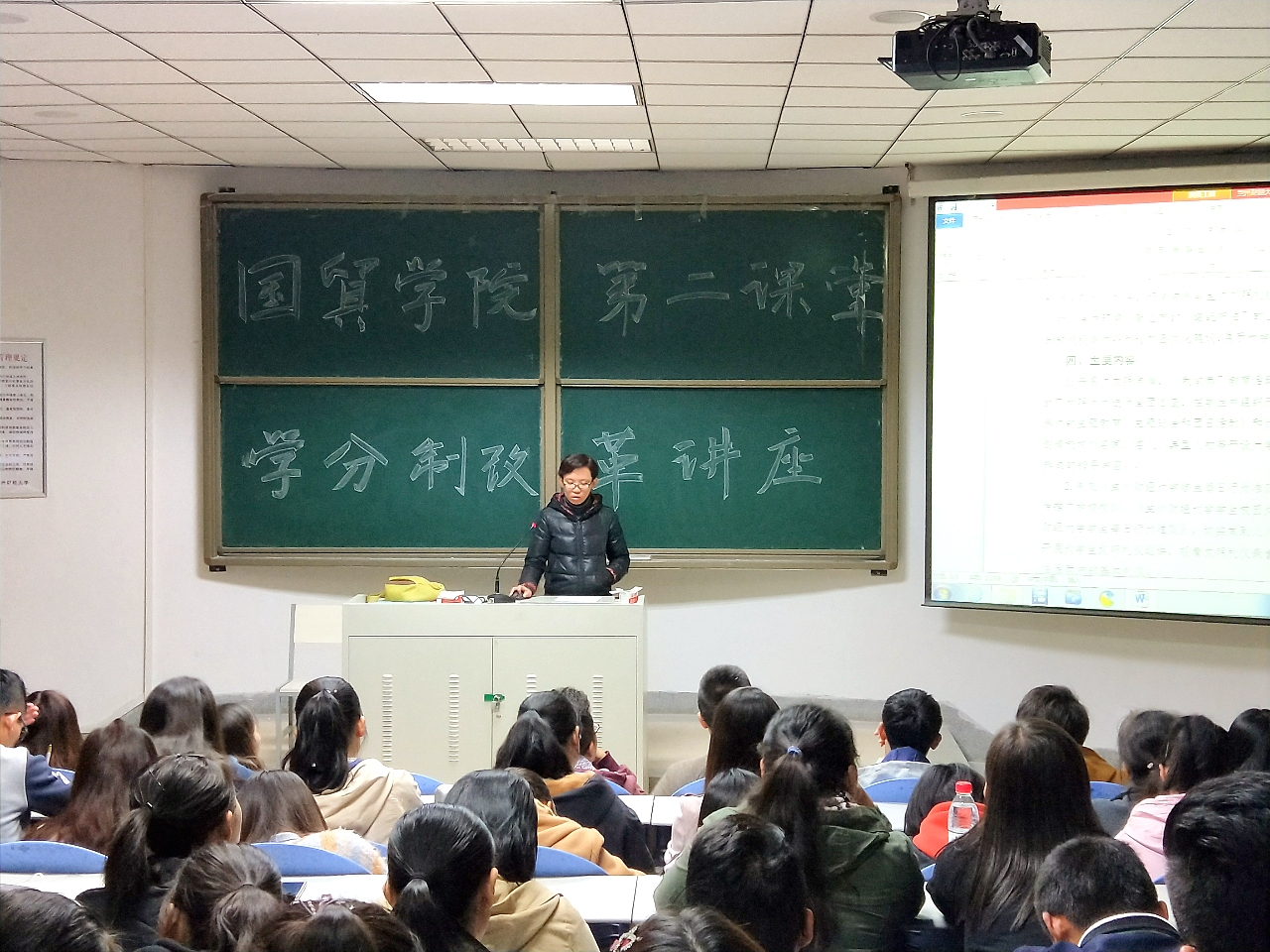 讲座过程中,王老师从方案目标、素质拓展分类、素质拓展与学时安排、素质拓展学分认定与成绩评定等方面出发,为全体学生详细讲解了方案各个方面的内容。同时也对同学们在创新创业、社会实践以及参与学校及学院组织的各项活动方面提出了要求,透彻地分析了切实践行该方案的利害关系,使得17级全体学生对“素质拓展”有了更深刻的认识,同时也激发了17级新生参加社会实践及提高自身创新创业能力的兴趣,对于更好地实施《“学生素质拓展计划”实施方案》有较为重要的意义!