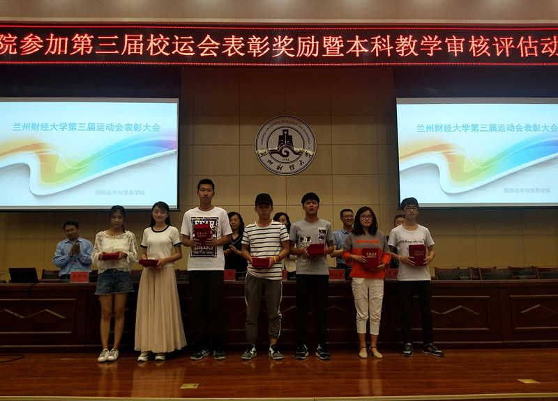 5月17日晚19:00,我院15、16、17级全体学生在兴隆讲堂召开了“国贸学院第三届校运会表彰奖励暨本科教学审核评估动员大会”,我院党委书记高丽霞、院长杨志龙,副院长于倩、院党委副书记杜汶钊,及专职辅导员王建华老师出席了本次大会。