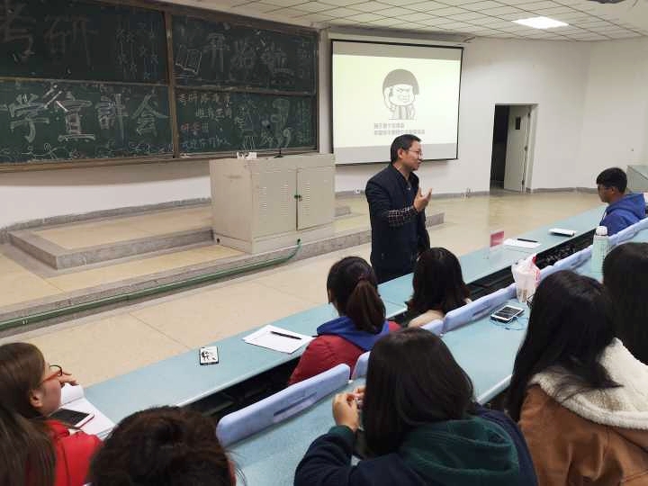 讲会开始以《你大四了》网络短视频抛砖引玉,吸引全场注意,抛出“学历与履历”的话题,阐述了“奶头乐理论”、“比尔盖茨成功案例”等,说明了学历对个人的重要性。接下来,学习部部长介绍了研学团的宗旨、构成和成立历史,研学团前辈们对自身经历和学习经验的分享。最后由杜书记总结,提出目标、环境、坚持、努力、时间规划对大学生活的作用,同时欢迎我院学生加入研学会。