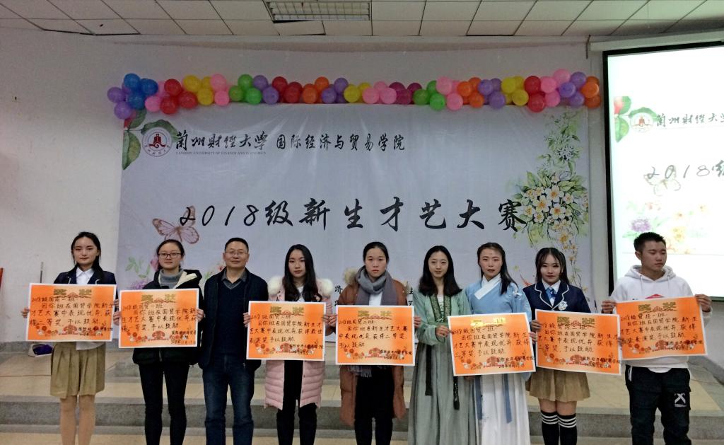 此次我院新生才艺大赛包含歌曲、舞蹈和情景剧与乐器合奏。同学们在表演形式上不落俗套,开场的一首说唱点燃了全场,使气氛升温。两支古风舞展现了同学们柔美的身姿,随后的舞蹈串烧将同学们平日在网上看见的舞蹈串在一起,带来了一场视觉盛宴。一曲优美的贝加尔湖畔乐器合奏,将中西方乐器风格融合,乐声柔美仿佛身临其境。精彩纷呈的情景剧再现高中美好时光,带领大家细数曾经美好的点点滴滴。全班同学齐唱的《国家》,句句歌词深情演绎同学对祖国的感恩之情和祝福之意,结束时一支的活力满满的舞蹈表达了同学积极向上的精神风采。经过角逐,三等奖由贸易经济一班器乐合奏《贝加尔湖畔》,国际经济与贸易一班舞蹈《浪人琵琶》,贸易经济二班《第八套广播体操的~舞动青春》夺得;二等奖为国际商务一班舞蹈《亘古亘今》,国际经济与贸易二班小品《铡美案》;一等奖获得者为国际经济与贸易一班情景剧《那些年》;最佳表演奖为国际经济与贸易二班大合唱《国家》,贸易经济一班舞蹈《Keep dancing》;最佳人气奖是国际商务二班歌曲《往后余生》。最后,杜书记上台点评,对此次新生才艺大赛的组织者和参赛同学表示了衷心的感谢,对同学们的创造力和表达能力表示欣慰。
