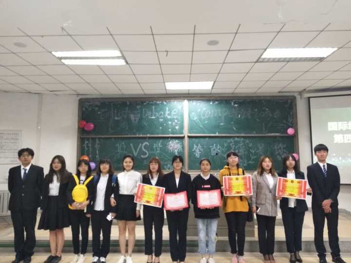 为丰富大学生课余活动,提高英语交流水平,加强思维逻辑能力。我院于5月29日晚19:00,在知行楼102举行我院第四届英语辩论赛。本次比赛评委有校科技实践部部长张芃鹏、李海文,我院分团委副书记胡月利。我院学生会副主席屈会会出席了本次比赛的嘉宾。