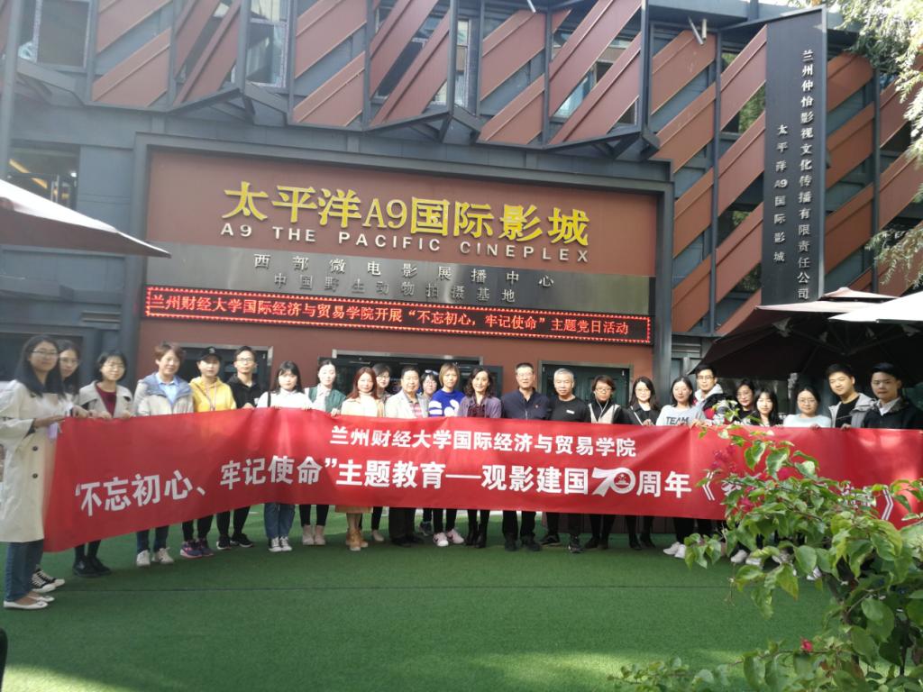 为庆祝新中国成立70周年,进一步落实“不忘初心、牢记使命”主题教育学习安排、弘扬爱国主义精神,国际经济与贸易学院于10月14日下午,组织师生党员开展“不忘初心、牢记使命”主题党日活动,活动内容观影《我和我的祖国》。