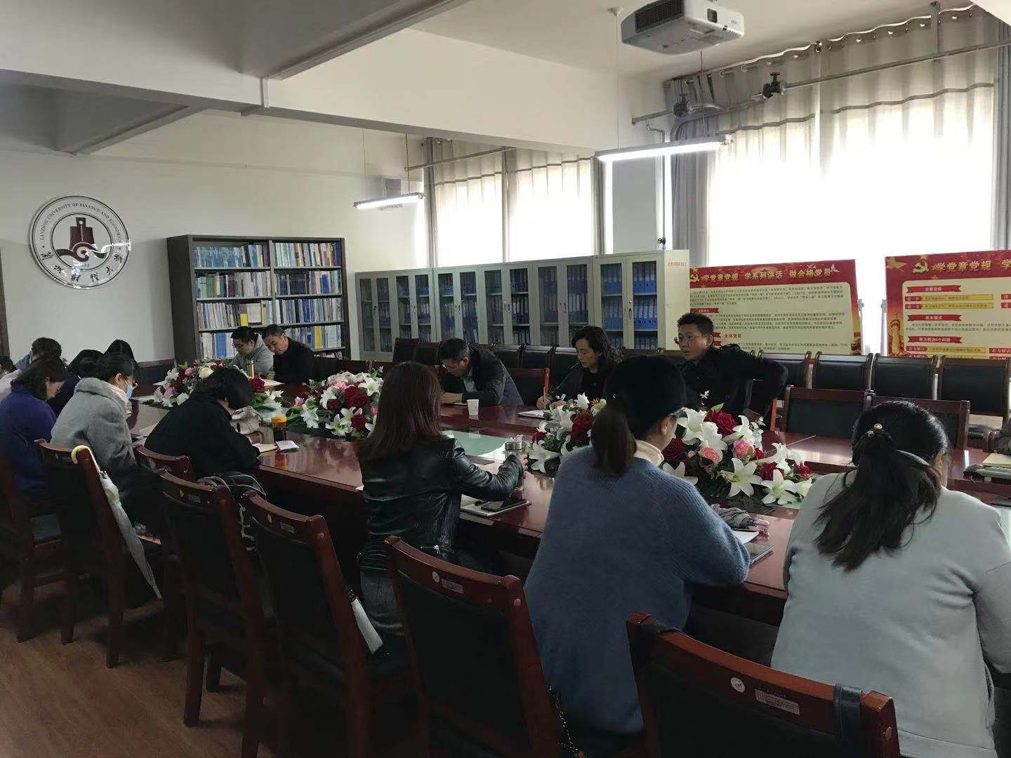 会上,万永坤带领大家集中学习《全面推进依法治国》篇章。接着召开“不忘初心、牢记使命”主题教育交流会,会上高丽霞交流发言《坚定理想信念,发挥模范引领作用》,她认为坚定理想信念,既是思想之“舵”,更是行动之“标”;是践行“不忘初心、牢记使命”的动力源泉;是立足岗位,发挥先锋引领作用的根本,结合自己实际工作谈到不足和今后努力的方向。杨志龙交流发言《落实立德树人根本任务,加强师德师风建设,做一名合格人民教师》他认为正确把握立德树人根本任务的内部要求,立德树人根本任务对高校的要求,是对教师的要求,抓好师德师风建设是落实立德树人根本任务的关键。最后彭翔宇老师代表指导组充分肯定了本次主题教育交流研讨会的效果,并对下一步开展好学院主题教育工作提出了相关要求。