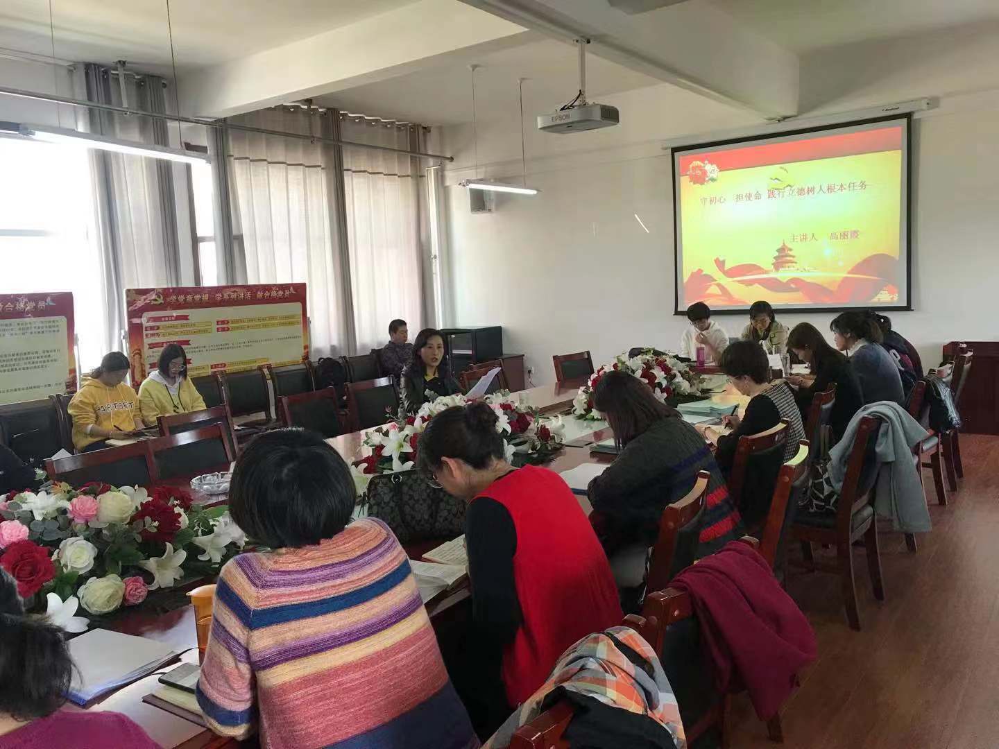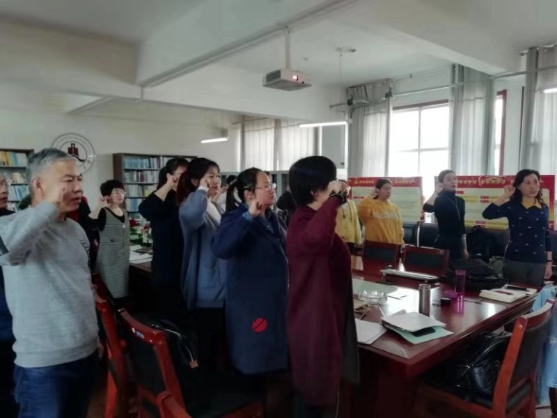 高丽霞以《守初心 担使命 践行立德树人根本任务》为主题展开党课辅导,围绕什么是初心,何为使命的理想信念为切入点,结合“不忘初心、牢记使命”主题教育学习心得和调研成果,对守初心,担使命作了深刻剖析,她认为只有我们每一位教育人都牢记初心,不忘使命,人民才会幸福,民族才会兴复兴,要牢记“做好老师”这个初心,坚定理想信念,牢记党员身份,履行党员义务,发挥党员先锋模范带头作用,义无反顾的肩负起“为党育人,为国育才”这个立德树人的伟大使命。专题辅导报告结束后全体党员重温入党誓词,在阵阵坚定的誓词下结束了这次精彩的党课辅导。