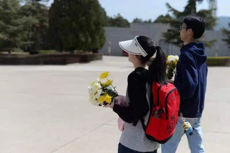 郁郁青柏掩忠骨,烈烈英魂诉长风。同学们怀着崇敬的心情进入烈士陵园,全体肃穆,鞠躬缅怀革命先烈,依此将菊花摆在纪念碑前寄托哀思。
