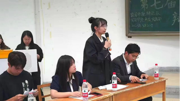 5月20日晚,由国贸学院科技实践部主办、辩论队承办的兰州财经大学国际经济与贸易学院第七届英国议会制辩论赛在知行楼302如火如荼的举行。